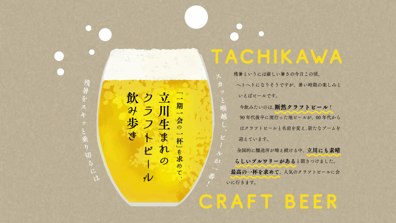 3月~4月にかけて桜が街を彩ります。小川沿いに遊歩道が整備された根川緑道の桜並木、菜の花の黄色と両岸の桜のピンク色のコントラストが美しい残堀川。あちらこちらで春の訪れを感じることができます。4月上旬には立川市と国立市を代表する桜の名所を巡るウオーキングイベントの開催も。国営昭和記念公園で3月下旬から5月下旬にかけて開かれる「フラワーフェスティバル」では、園内各所で次々と開花する春の花を楽しめます。