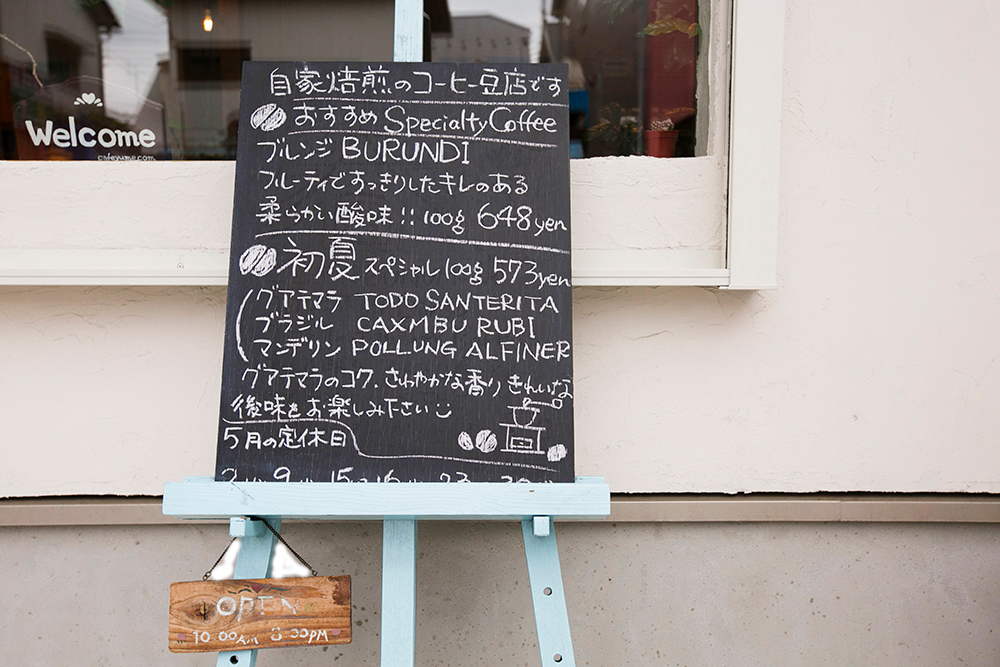 日本でも数が少ないという熱風式焙煎機で焼いたコーヒー豆。ご主人自らが厳選した、とっておきの豆を詰め合わせにしてもらえます。これまでとはひと味違ったやさしい飲み口が特徴。